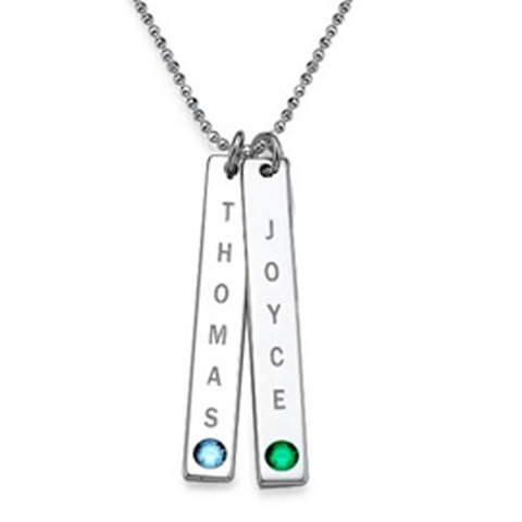 Couple Flat Vertical Bar Necklace with Birthstones