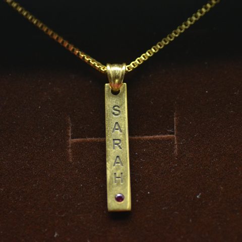 Flat Bar Name Necklace with Birthstone
