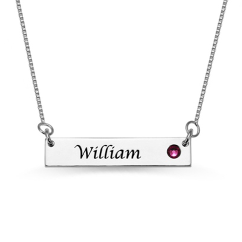 Flat Bar Name Necklace with Birthstone